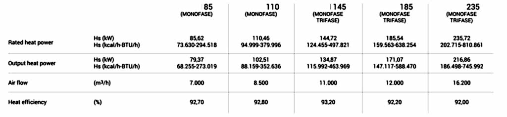 HAVA ÜFLEMELİ ASKILI ORTAM ISITICI SOBALAR(GAZ VEYA DİZEL) Ünite yatay veya dikey olarak kurulabilir Brülör, harici hava aspirasyon kanalı ile bağlantı yoluyla temiz yanma havası sağlamak için şnorkel çıkışı ile birlikte verilmektedir. Yeni yüksek performanslı fanlarla birleştirilmiş yeni ısı eşanjörü,% 92/93 oranında ısı çıkışı sağlar Yanma odası ısıtılmadan önce ve soğutulduktan sonra Yanma odası kontrol camı gözetleme deliği Termostat: Fan kontrolü için FAN; LİMİT: brülör kontrolü için; AŞIRI ISINMA: aşırı ısınma durumunda manuel sıfırlamalı emniyet termostatı Daha yüksek sertlik ve mukavemet sağlamak için takviye çapraz katlamalı paneller Askılı makinelerde bile iç yıkama için çıkarılabilir panelli yatak yapısı Tüm montaj ekleri ve vidaları yalnızca metriktir, kendiliğinden kılavuzlu değildir Fan: – ERP 2015 direktifi ile uyumlu – son derece düşük gürültülü fan (gürültü seviyesi 1 metrede 69 db’den az) – 7 kanatlı: ılık havanın homojen yayılması için yüksek performans (hava akışı ve statik basınç) – delikli kanaldan – yalıtım sınıfı IP55 – havayı taşımak ve yüksek statik basınç sağlamak için fan girişi – termostat / nem ölçer / zamanlayıcıya bağlanabilir – kablolu terminal aracılığıyla merkezi bir kontrol ünitesine bağlanabilir Her ana bileşen (fan, brülör, elektrik panosu, termostatlar, vb.) IP68 elektrik bağlantılarının hızlı bağlantılarıyla birlikte verilir: – hızlı montaj ve demontaj ve teknik müdahaleler – montaj ve demontaj hatalarının giderilmesi Tavana montaj için paslanmaz çelikten sağlam askı kancaları ve zemine montaj için paslanmaz çelik destek ayakları. Post navigation Go to Top